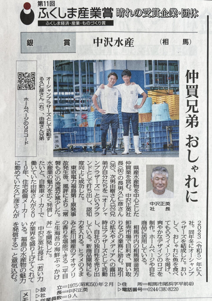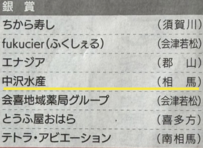 この度中澤水産は、福島民報社が主催する福島県内の優れた企業、団体、個人を表彰する「ふくしま産業賞」銀賞を受賞しました!